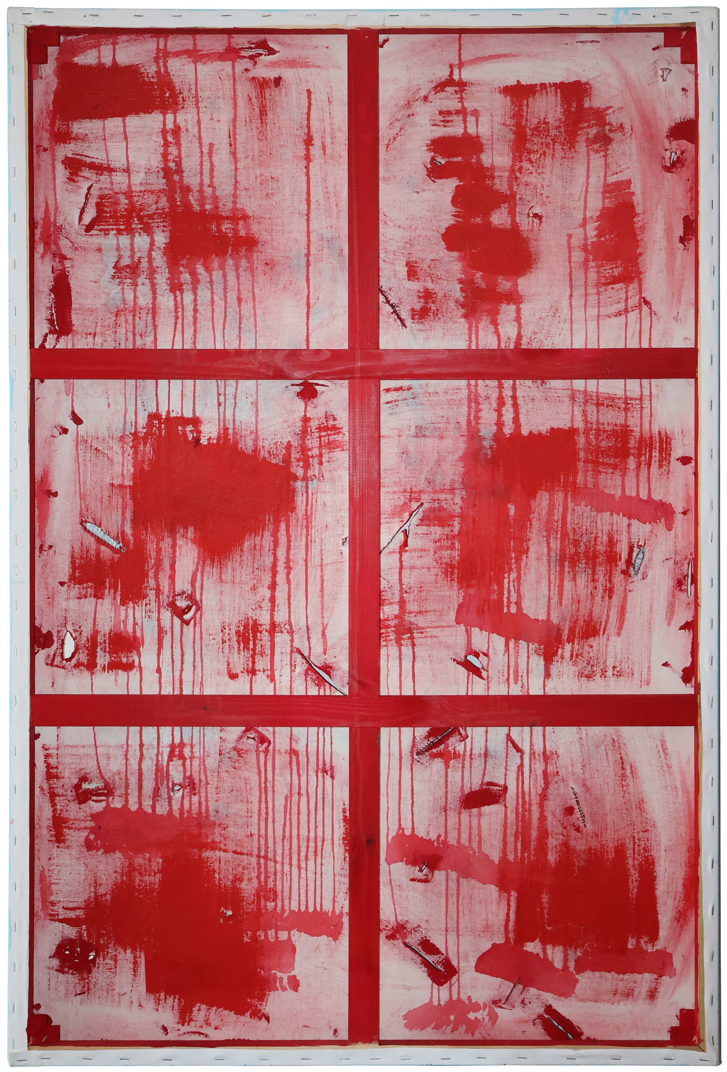 From the front, the viewer is confronted only with visible wounds, the marks that time leaves on the surface. From the back, however, the work reveals blood, the living wound, and the latent pain that often remains hidden.