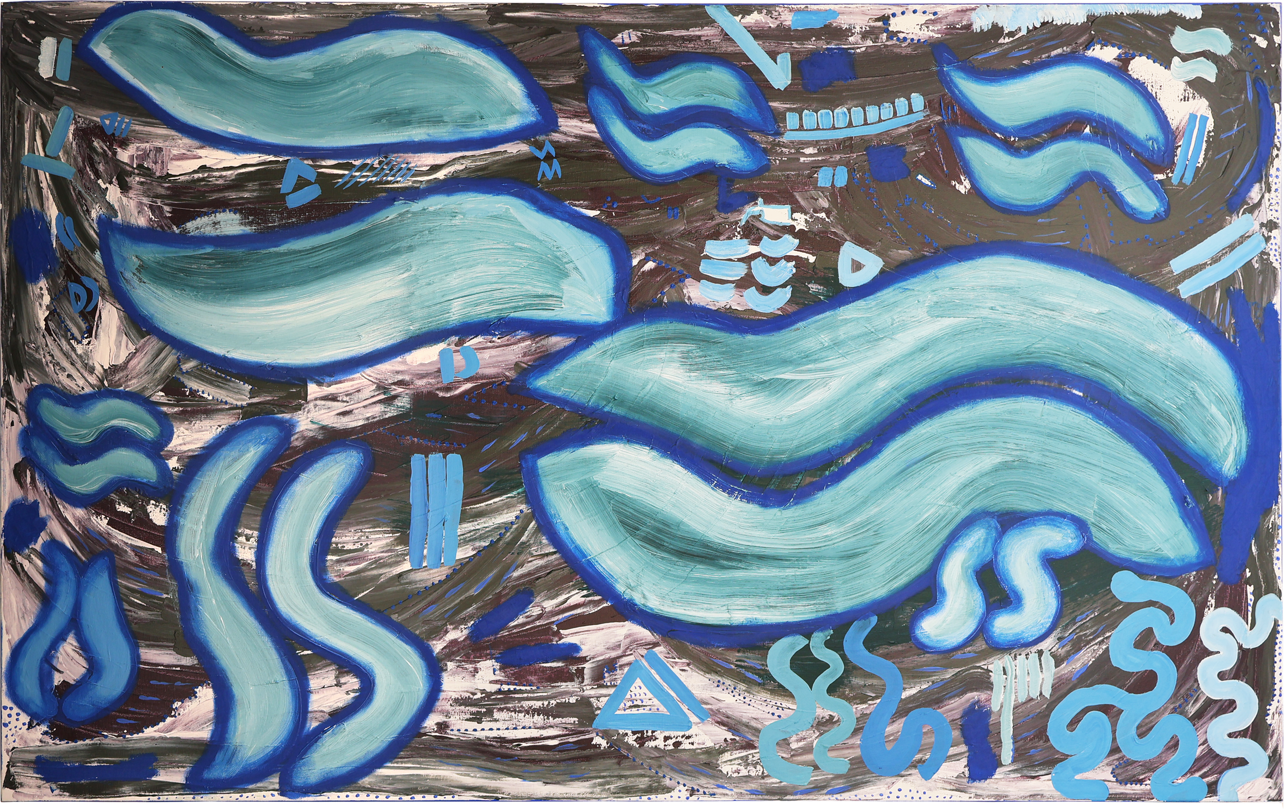 ‘calm after chaos’, 2025, acrylic & oil on canvas, 89×146 cm
